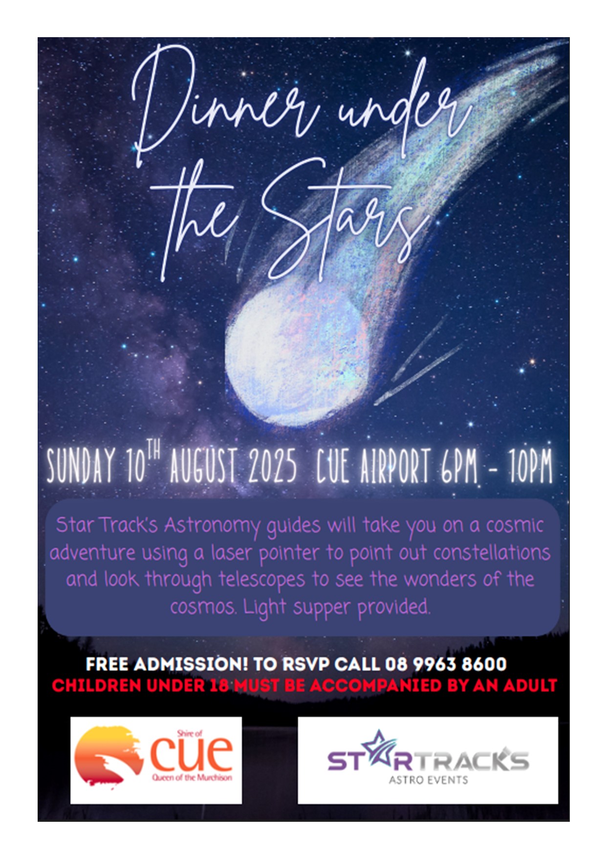 « All Events This event has passed. Dinner Under the Stars 10 August, 2025 @ 6:00 pm - 10:00 pm « Craft Group Craft Group » Add to calendar Google Calendar iCalendar Outlook 365 Outlook Live Details Date: 10 August, 2025 Time: 6:00 pm - 10:00 pm